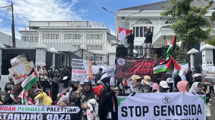 HARIANJABAR.ID – Puluhan warga Bandung Raya menggelar aksi solidaritas di depan Gedung DPRD Jawa Barat pada Jumat, 13 Februari 2026, mendesak Israel menghentikan agresi militer dan mematuhi gencatan senjata permanen demi melindungi warga sipil Palestina.