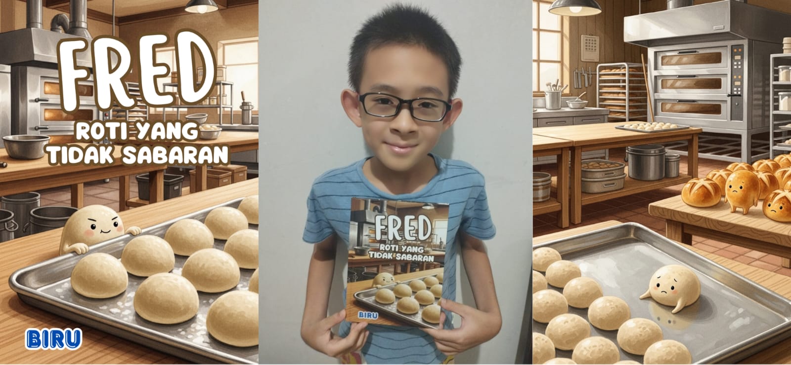Pada usia yang terbilang belia, 11 tahun, Biru Langit telah berhasil mewujudkan imajinasinya menjadi sebuah buku cerita bergambar yang berjudul “Fred Roti yang Tidak Sabaran”. Karya yang l...